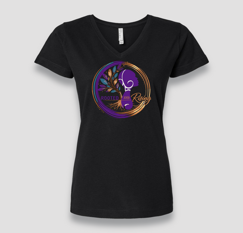 Rooted And Rising V Neck Tee - Black